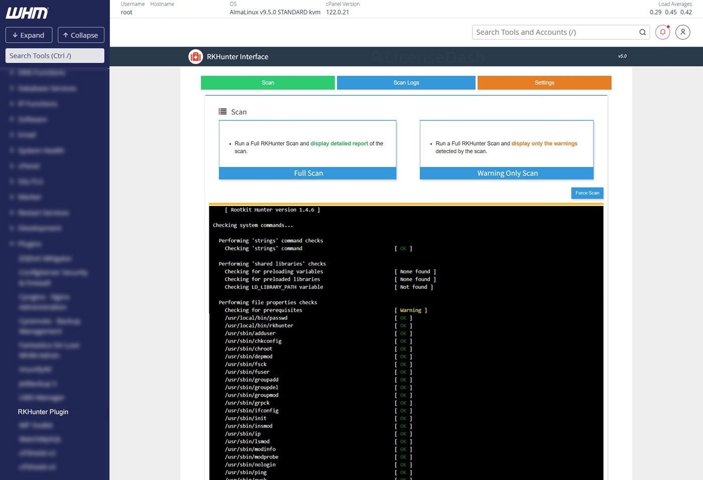 Installing and activating RKHunter Interface for cPanel and plesk is quick and straightforward. Follow the steps below to set up the plugin on your WHM/cPanel or plesk server: